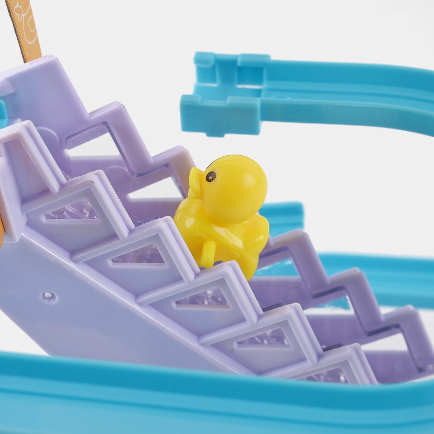 The Happy Duck Duck slide toy set offers exciting play moments for children. It features light and sound effects, cute duck figures, and an automatically moving staircase for interactive indoor and outdoor fun. Easy to set up and entertaining for all young kids.
