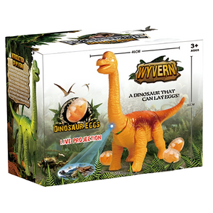 - Mystery movementSoundsEyes that light upWith EggsAssorted colorsWorks with 3 AA batteries (not included)Age 3 +Excellent PackagingThis battery operated simulation dinosaur features LED light and fantastic music, attractive to your kids.
