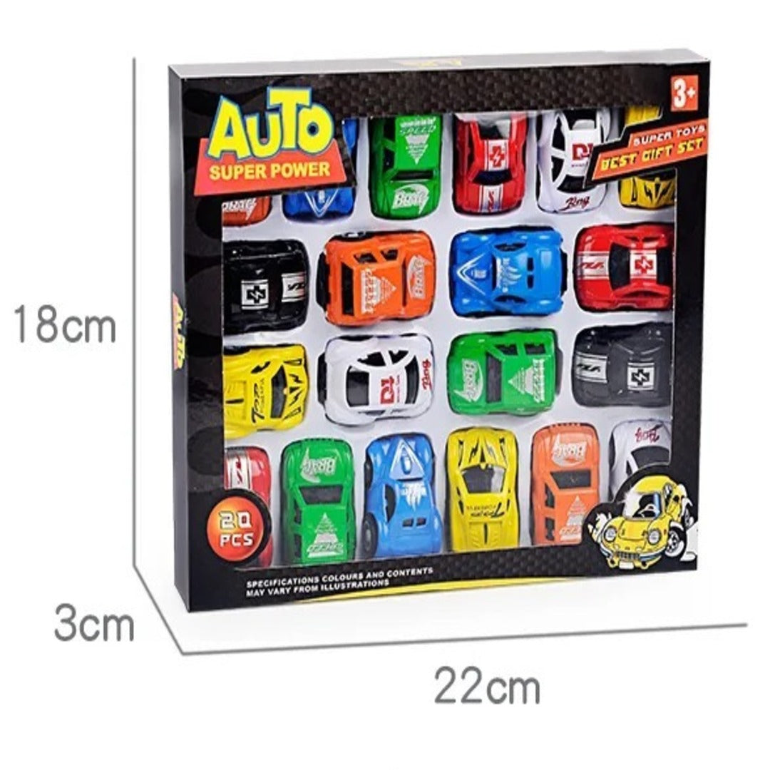 • Set of 20 colorful mini die cast racing cars in a variety of designs