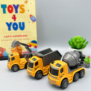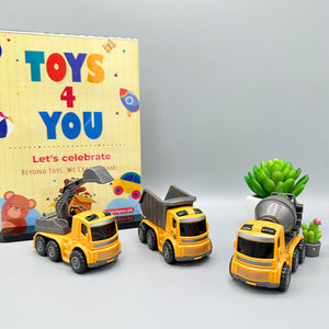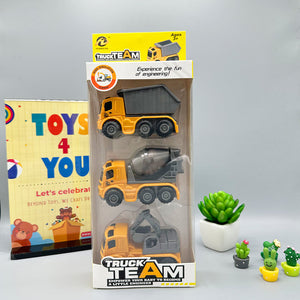 Description: Embark on a thrilling construction adventure with our 3 PCS Construction Truck Series. Designed for young builders and construction enthusiasts, this set features four rugged and realistic construction vehicles that are ready to tackle any job site. Whether you're hauling materials, clearing debris, or building new structures, these trucks are essential tools for imaginative play and hands-on learning.