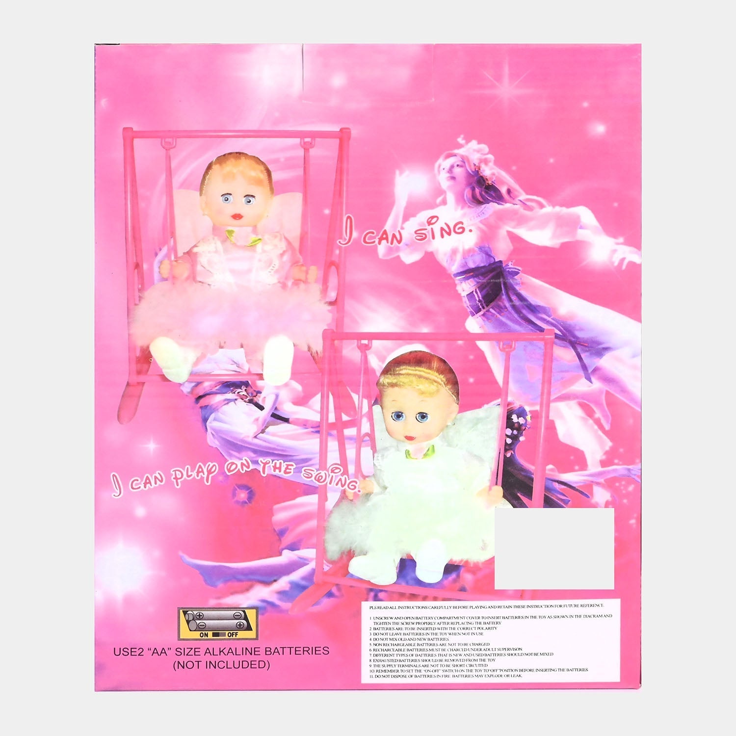 This charming baby doll combines the comfort of a soft toy with engaging features. It gently swings back and forth creating a soothing and rhythmic motion and the light and music creates a delightful playtime while enhancing the sensory experience, providing visual and auditory stimulation for your child.