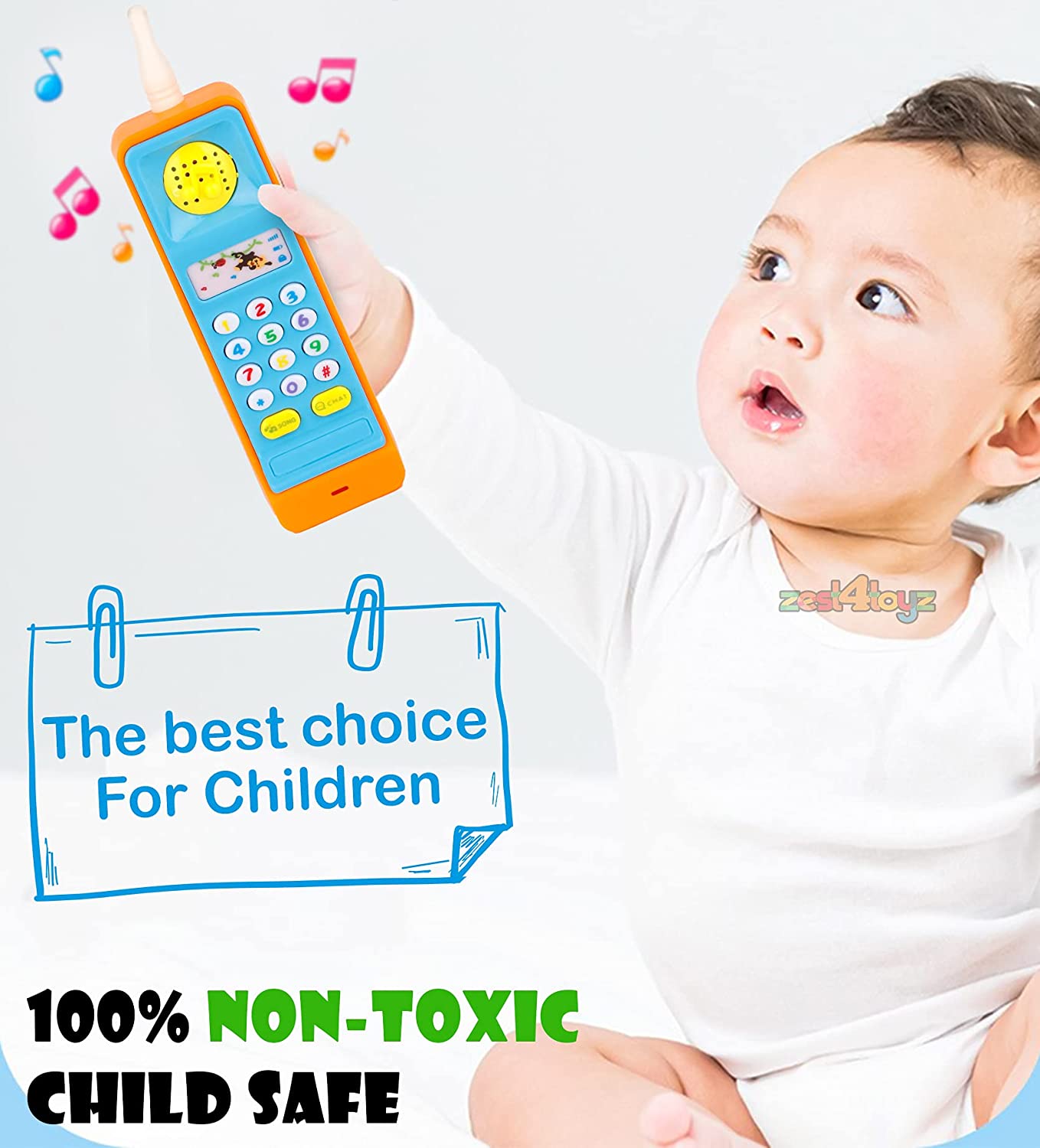 - Light and music with projection feature, Compact and portable thus making it easy to carry everywhere you go. This baby mobile phone is sure to keep your little one entertained and is packed with awesome features to help your child learn through play. Press the different buttons, can hear different sound and music. Keep little one entertained in a big way with a pretend play mobile phone can easily learn about numbers. This mobile phone does not have any sharp edges and has smooth surface with rounded edges for utmost safety.