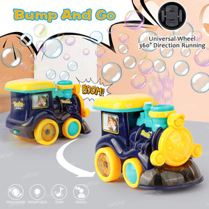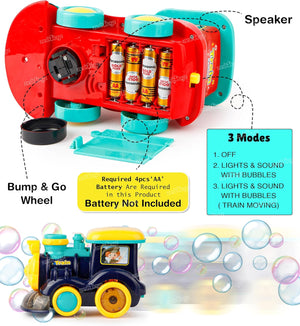 - Bubble machines are fun but they’re even more exciting in the shape of a train! Not only does this bubble blower look fun, it has larger and richer bubble output more than 400+ bubbles per minute and it even has the headlights and train tooting sounds for even more interactivity to engage children’s minds and aid their visual development and cognition.